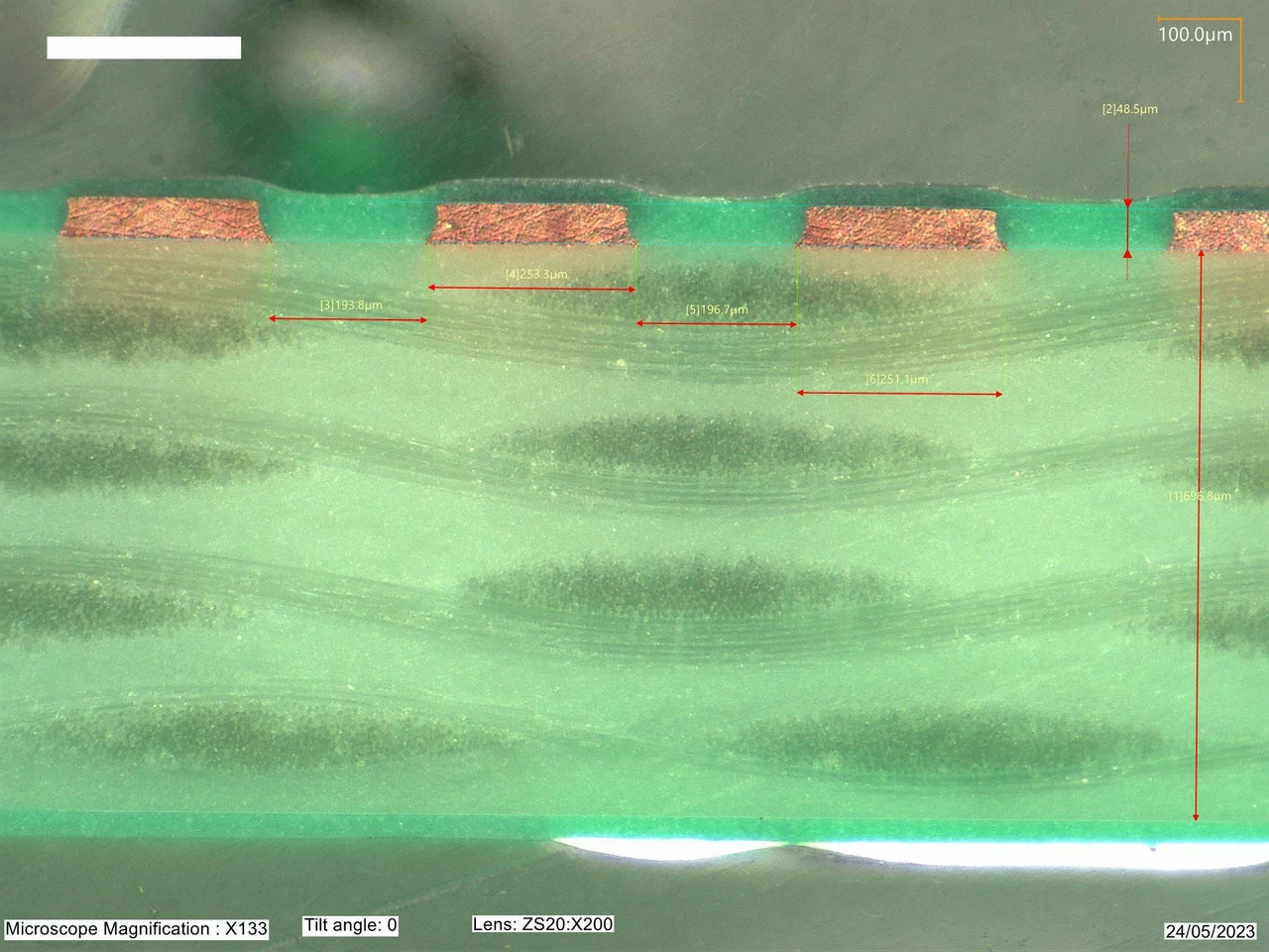 Wir erzeugen jährlich mehrere hundert Schliffe in unserem Labor. Die Schliffanalyse ist eine wichtige Maßnahme zu Qualitätssicherung. Sei es die Überprüfung von Leiterplatten auf Einhaltung der Spezifikationen (Maßhaltigkeit, Oberflächen, Lackschichtdicken, Anbindung der Innenlagen, Prepregs, Durchkontaktierungen, burried Vias, etc.) oder sei es die Überprüfung der bestückten Baugruppe (Lötstellenanalyse, Einpresszonen von Pins in der Leiterplatte, etc.). Auch Einzelkomponenten wie Stecker oder SMD Bauteile werden über Schliffe geprüft.